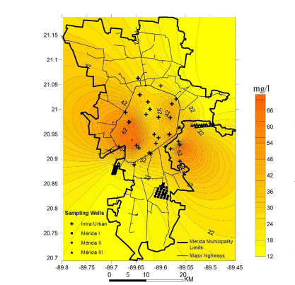 En Yucatán, la mayoría de las industrias se encuentran en el sureste de Mérida. Estudios de calidad del agua han encontrado altos niveles de metales como arsénico, cadmio, plomo y cromo, que superan lo permitido por las normas de salud. Estos metales en el agua subterránea son un problema para la salud en la región.